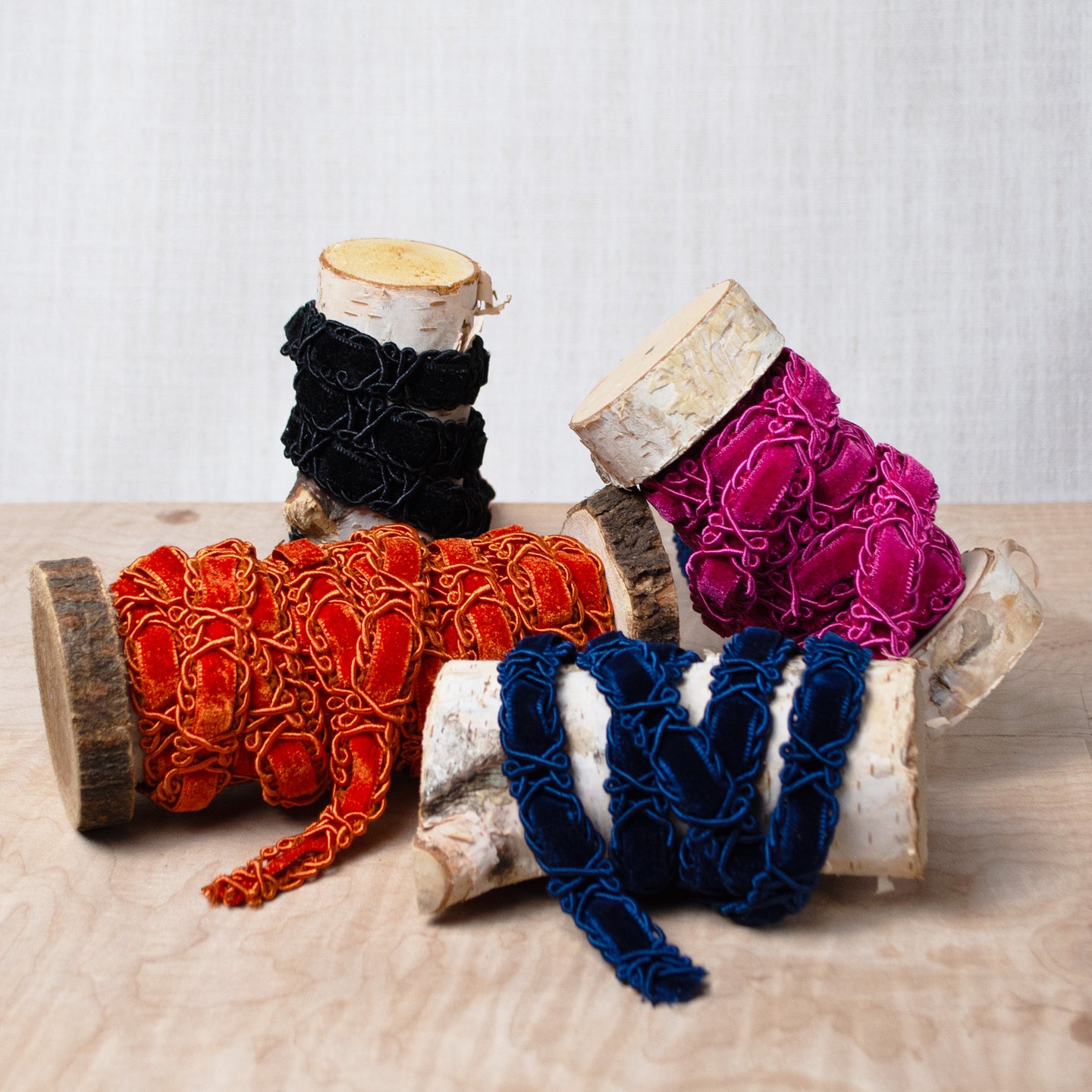 Most things 70s-inspired grab our attention! The re-issue of this vintage McCall's pattern was certainly the impetus for creating this blouse. Now to find just the right fabric and trim combination! We found this lovely cloth on a shopping trip to Illumination Fine Fabrics in Fort Worth, Texas. Cross-weave linen is usually a fine choice, but especially so when woven into this delicious shade of mauve-purple. Matching it up...